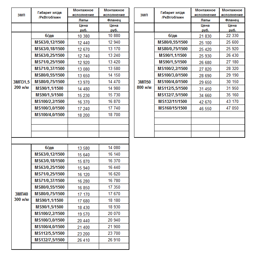 ЗМП-31.5, ЗМП-40, ЗМП-50, ЗМП-63, ЗМП-80, ЗМП-100, ЗМП-125