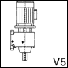 - вариант исполнения на лапах, ось вертикальная, двигатель над редуктором – выходным валом вниз (V5);