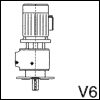 - фланцевый вариант исполнения, ось вертикальная - двигатель над редуктором – выходным валом вниз (V6);