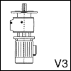 - вариант исполнения с фланцем, ось вертикальная - двигатель под редуктором – выходным валом вверх (V3);